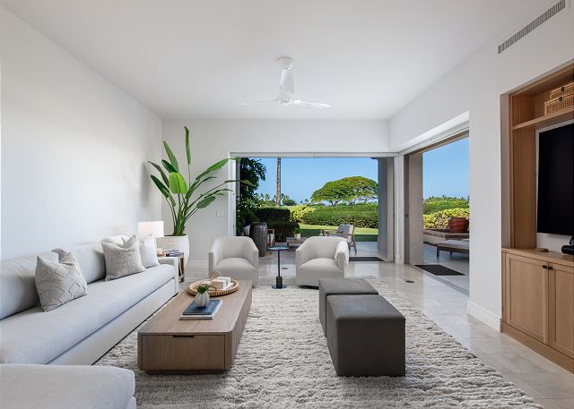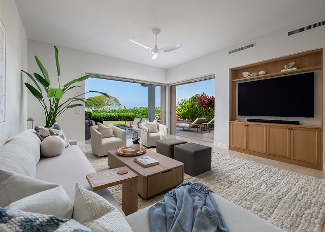combination tub/shower, king, outdoor shower, shower, toilet, tub, twin/ single, reefs, restaurants, volcano, waterfalls, Dining, Satellite / Cable, Television, Smart TV, Air Conditioning, Clothes Dryer, Fitness Room / Equipment, Internet, Linens Provided, Living Room, Parking, Towels Provided, Washing Machine, Shampoo & conditioner, Desk, Wifi, Free Wifi, Wifi Speed 250+ Mbps, Desk Chair, Coffee Maker, Dishes & Utensils, Dishwasher, Kitchen, Microwave, Oven, Refrigerator, Stove, Toaster, Dining Table, Kitchen Island, beachcombing, horseback riding, luaus, photography, scenic drives, sight seeing, walking, whale watching, fitness center, groceries, hospital, Beach, Golf Course Front, Near The Ocean, Ocean View, Resort, Water View, Balcony, Deck / Patio, Golf, Lanai / Gazebo, Lawn / Garden, Outdoor Grill, Communal Pool, basketball court, fishing, golf, golf privileges optional, hiking, sailing, scuba diving or snorkeling, snorkeling, surfing, swimming, tennis, children welcome, non smoking only, pets not allowed, flexible, Booking Possible, not necessary, Dining Area, Dining Room, Booking Possible, Housekeeper Optional, Booking Possible, Concierge, Massage, Private Chef, Staff, Adventure, Family, Romantic, Spa, Sports & Activities, Tourist Attractions, Enhanced cleaning practices, Clean with disinfectant, No-contact check-in and check-out, High touch surfaces cleaned with disinfectant, Towels and bedding washed in water that's at least 60sC/140sF, 1 day (24 hours)